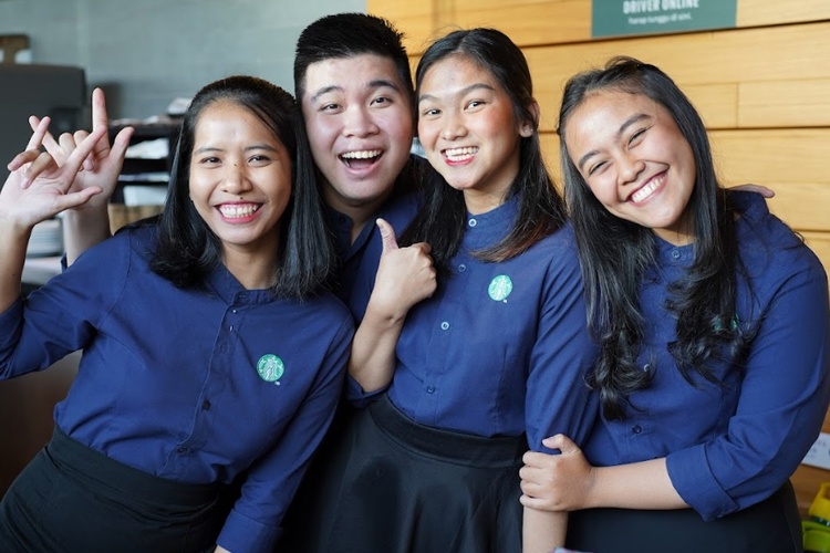 (Ki-ka) Risma Aryuni (barista dengar), Aldyansyah (barista Tuli), Chelsy Prillia (barista Tuli), Rifka Triamanda (barista dengar). Dari segelas kopi racikan barista Tuli dan barista dengar di Starbucks Signing Store Tata Puri, Jakarta, orang dengar belajar ?mendengar? dengan bahasa isyarat. Di gerai ini, Bahasa Isyarat Indonesia (Bisindo) tidak lagi hadir sebagai ?alat bantu?, tetapi sebagai bahasa yang hidup dan digunakan sehari-hari.