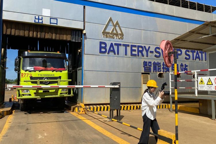 Truk listrik di IWIP, Kamis (15/1/2026). (KOMPAS.com/ZINTAN)
