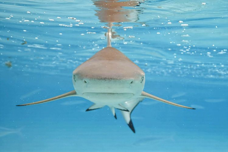 Ilustrasi hiu sirip hitam. Studi ilmuwan Jerman mengungkap pengasaman laut bisa melemahkan gigi hiu dan mengancam peran mereka sebagai predator puncak.