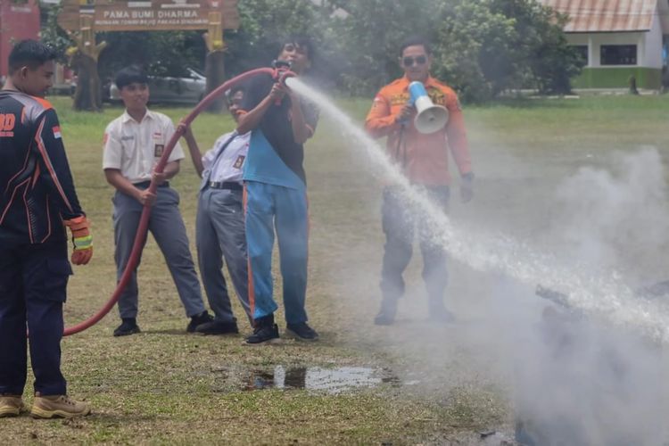 Simulasi Tim Kesiapsiagaan dan Tanggap Darurat (TKTD) yang melibatkan siswa/i SMKN 3 Sendawar, Kalimantan Timur.