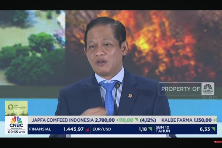 Menteri LH Hanif Faisol Nurofiq memaparkan soal praktik ESG perusahaan dalam ESG Sustainability Forum 2026, Selasa (3/2/2026).