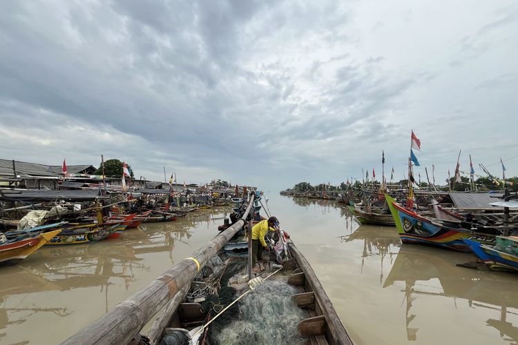 Deretan kapal nelayan yang bersandar di Desa Citemu, Kecamatan Mundu, Kabupaten Cirebon, Jawa Barat, Minggu (11/1/2026).