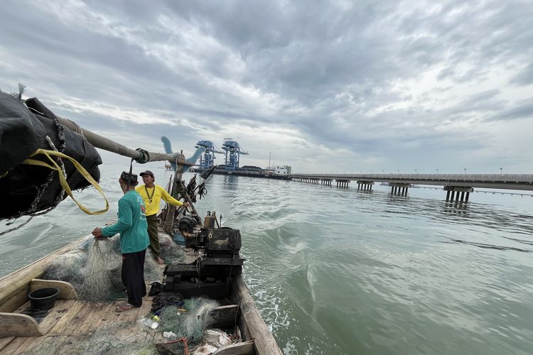 Bentangan jetty Pembangkit Listrik Tenaga Uap (PLTU) Cirebon-1 di lepas pantai Kecamatan Mundu, Kabupaten Cirebon, Jawa Barat, Minggu (11/1/2026).