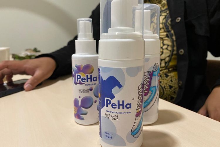 Produk pembersih sepatu merek PeHa dijajakan di Smesco Indonesia, Rabu (11/2/2026).