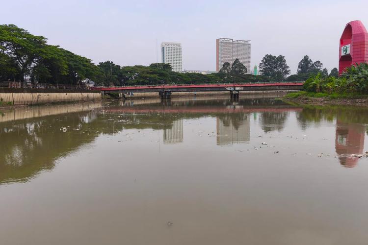 Sungai Cisadane tercemar limbah gudang bahan kimia, Selasa (10/2/2026). DLH Banten targetkan pembersihan pencemaran pestisida di Sungai Cisadane selesai dalam dua minggu setelah kebakaran pabrik di Tangerang Selatan.(Kompas.com/Intan Afrida Rafni)
