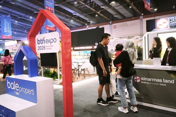 Rachmat Adi bersama istri dan anaknya mencari referensi hunian berkelanjutan pada BTN Expo 2026 yang digelar di JCC Jakarta, Sabtu (31/1/2026).(KOMPAS.com/ANINGTIAS JATMIKA)