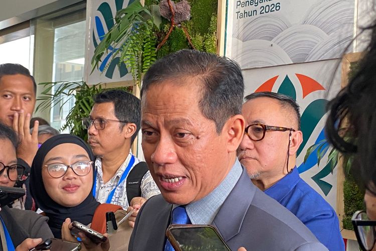 Menteri Lingkungan Hidup, Hanif Faisol Nurifiq memberikan pernyataan kepada wartawan, Jakarta Selatan, Rabu (25/2/2026).