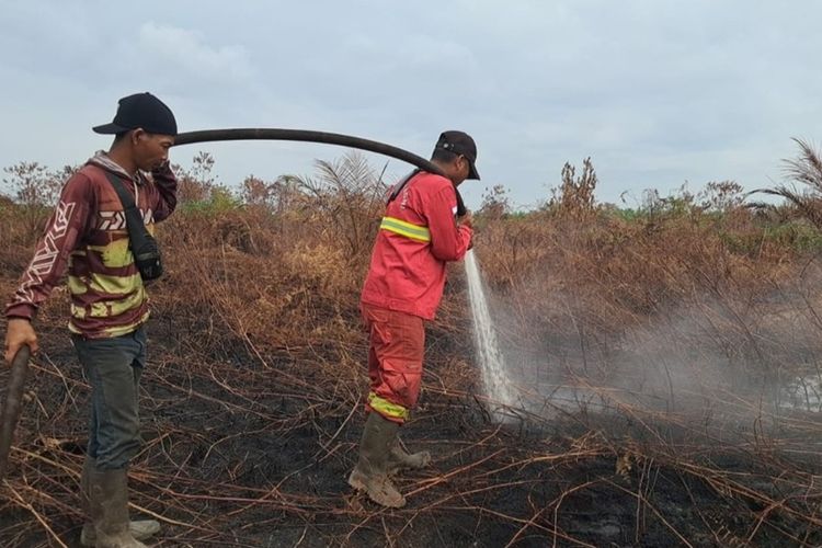 Petugas memadamkan api yang membakar hutan di kawasan Riau. (Dok.KEMENHUT)