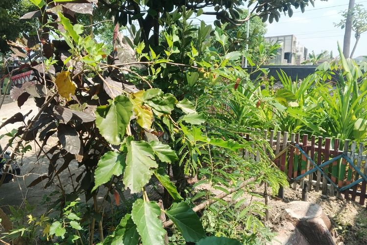 Tanaman-tanaman di pekarangan kantor desa di Kabupaten Ngawi, yang juga menjadi tempat untuk kegiatan pos gizi dashat (PGD) di Kabupaten Ngawi pada Kamis (16/4/2026).