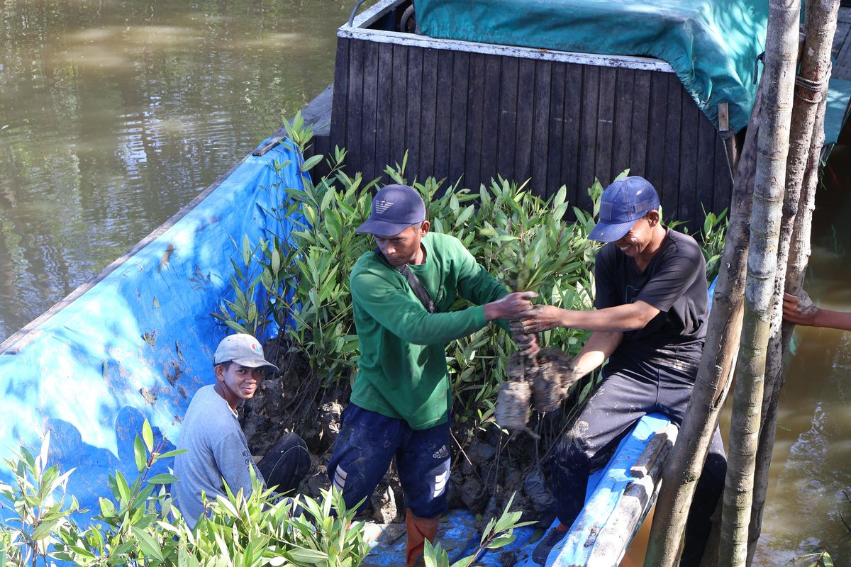 KOMPAS.com - Kelompok Tani Hutan (KTH) Bakau Lestari mengangkut 4.000 bibit bakau menuju hutan kawasan Hutan Mangrove Pangkal Babu, Desa Tungkal Satu, Kecamatan Tungkal Ilir, Kabupaten Tanjung Jabung Barat, Jambi.