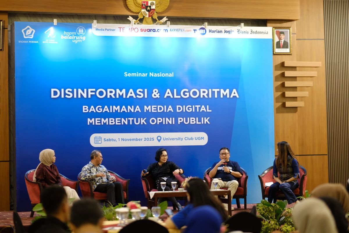 Fenomena ini menjadi sorotan utama dalam seminar nasional bertema “Disinformasi & Algoritma: Bagaimana Media Digital Membentuk Opini Publik” yang digelar Keluarga Alumni Universitas Gadjah Mada Komunitas Pers Mahasiswa (Kagama Persma) di University Club UGM, Sabtu (1/11/2025).
