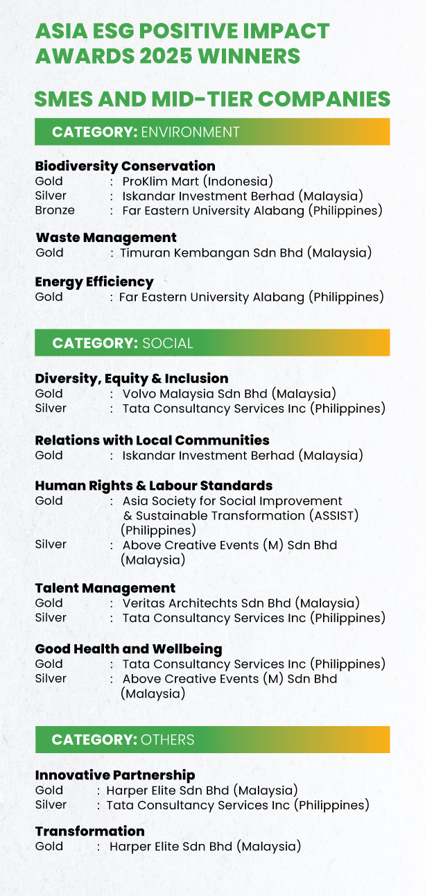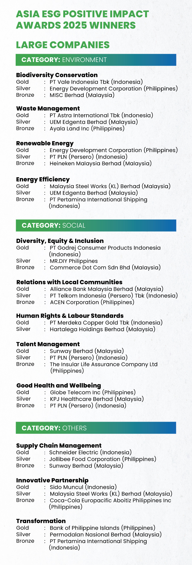 Daftar Pemenang ASIA ESG POSITIVE IMPACT Awards 2025
