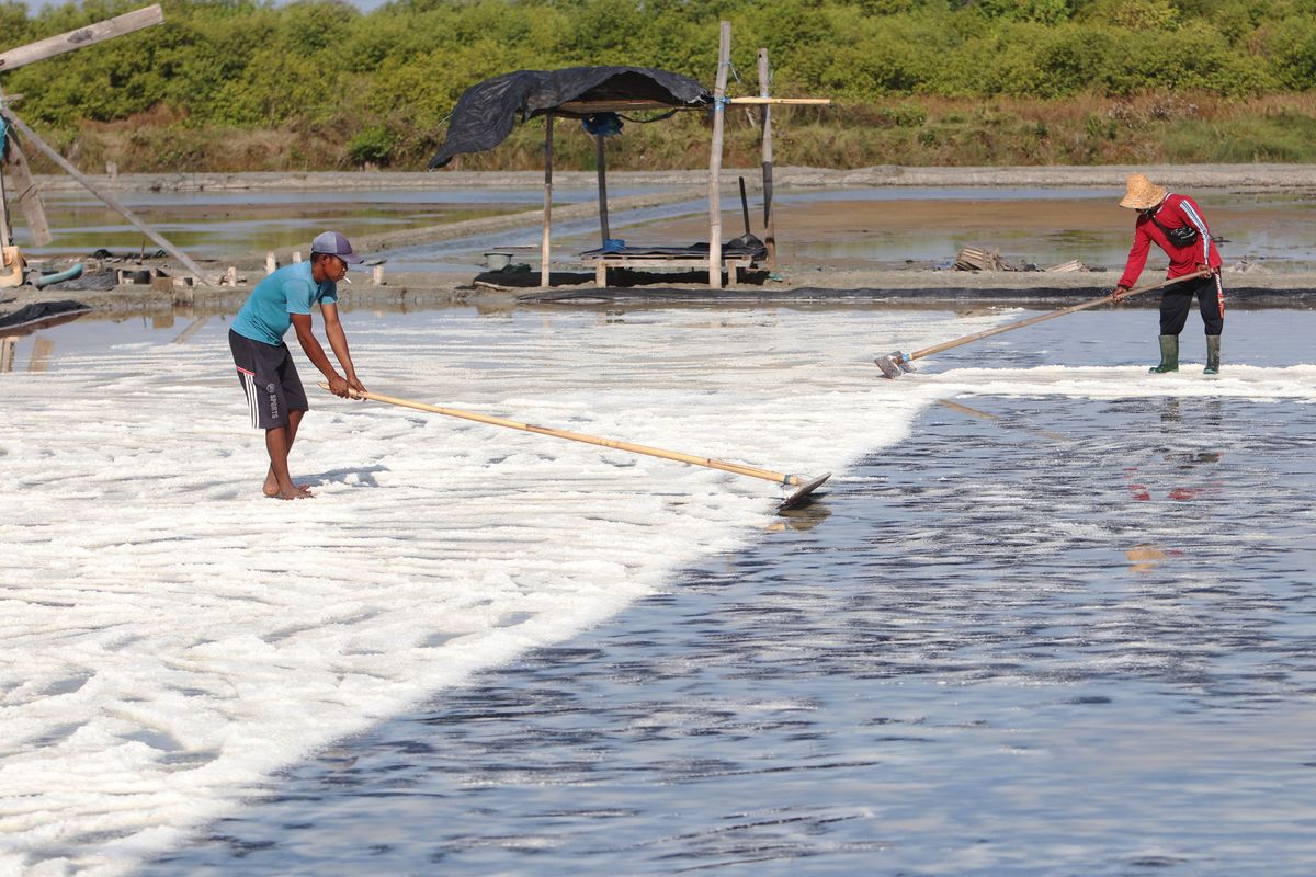 Petani garam asal Kota Pasuruan Jawa Timur mengalami mengalami penurunan produksi selama kurun waktu 2 tahun terakhir akibat anomali cuaca, Selasa (13/1/2026). KKP optimistis 2027 bisa swasembada garam. Namun, kualitas dan cuaca masih menjadi tantangan.Maka dari itu, pemerintah mengejar target swasembada 2027 melalui tiga strategi utama yakni ekstensifikasi, intensifikasi, serta pengembangan teknologi.