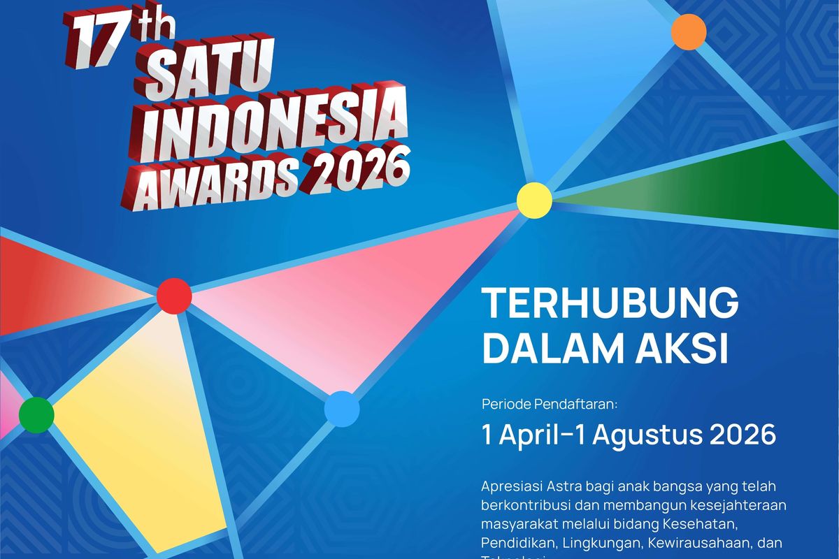 KOMPAS.com - Pendaftaran ajang SATU Indonesia Awards yang digelar Astra resmi dibuka hari ini, Rabu (1/4/2026) hingga Sabtu (1/8/2026). Ini merupakan penghargaan bagi masyarakat yang berkontribusi dan membangun kesejahteraan di wilayahnya.